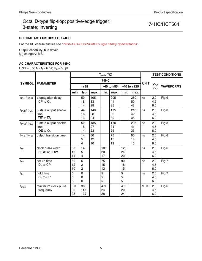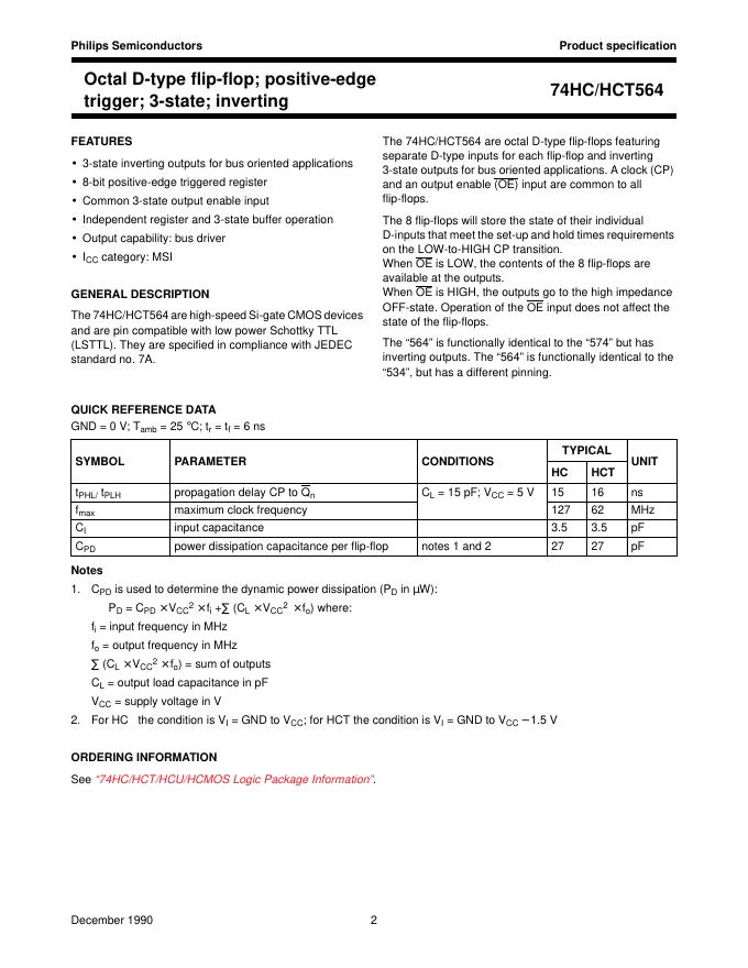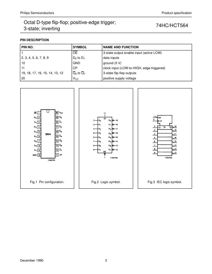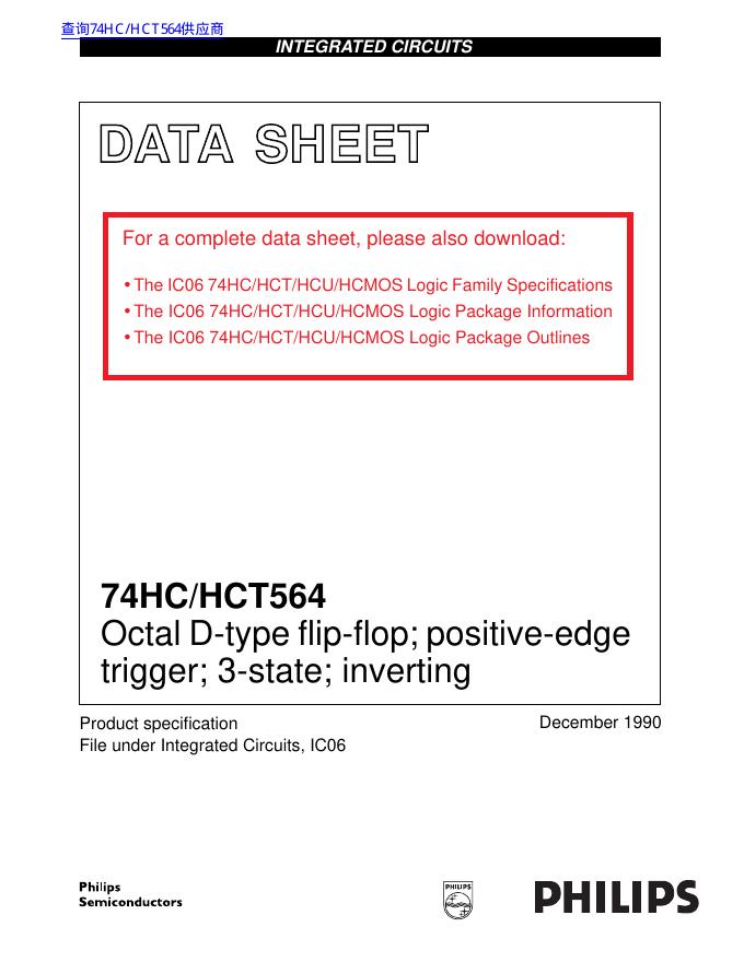 philips 74HC/HCT564 Octal D-type flip-flop positive-edge trigger 3-state inverting 数据手册.pdf