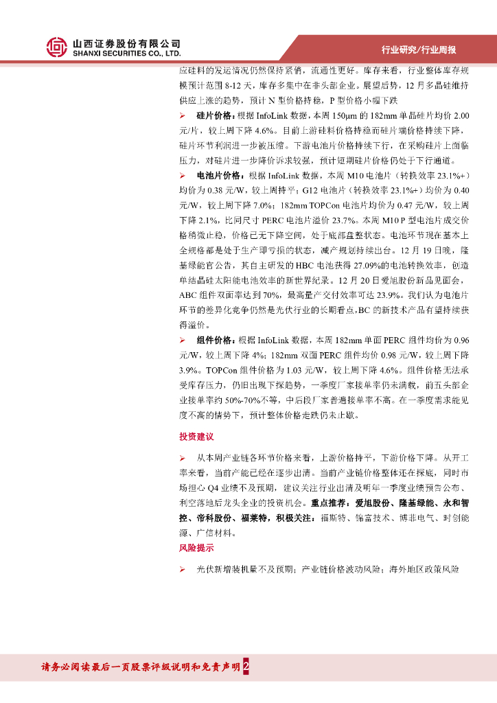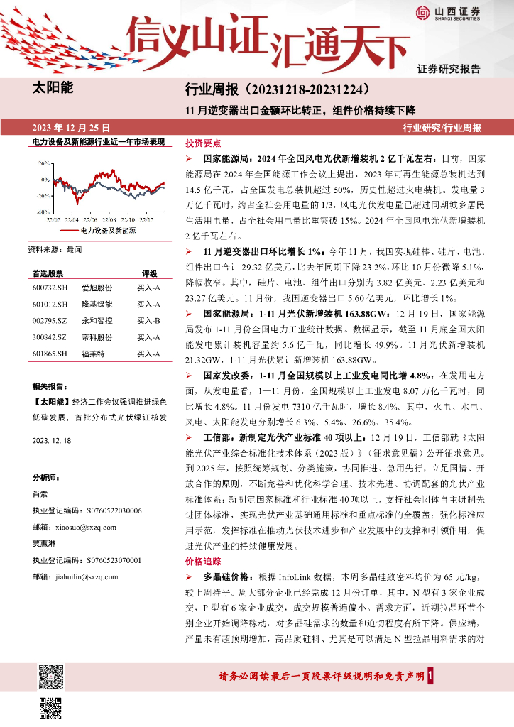 山西证券:太阳能行业周报:11月逆变器出口金额环比转正,组件价格持续下降.pdf