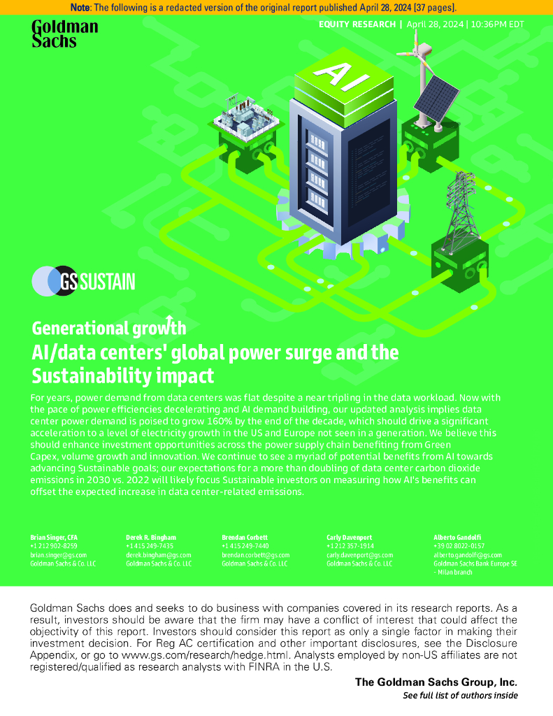 高盛:2024代际增长报告:人工智能/数据中心的全球力量激增及其对可持续性的影响(英文版).pdf