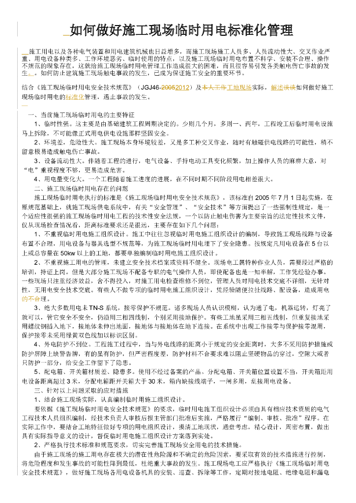 如何做好施工现场临时用电标准化管理.doc