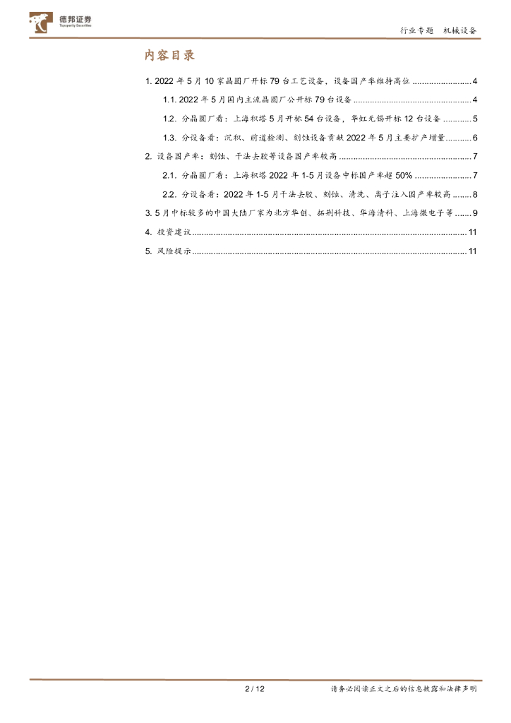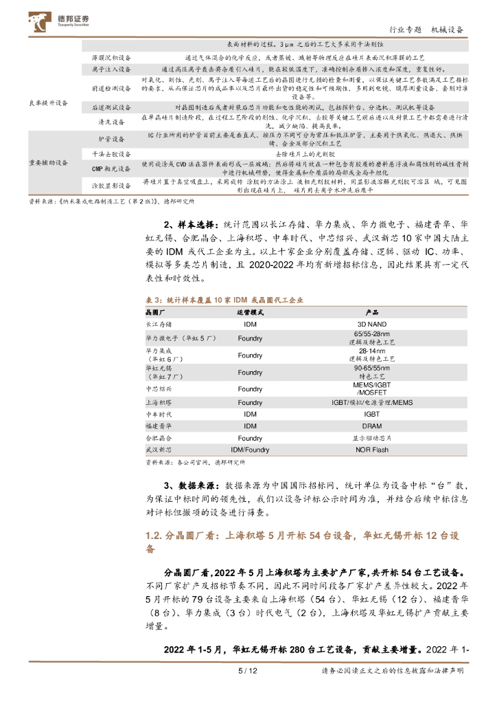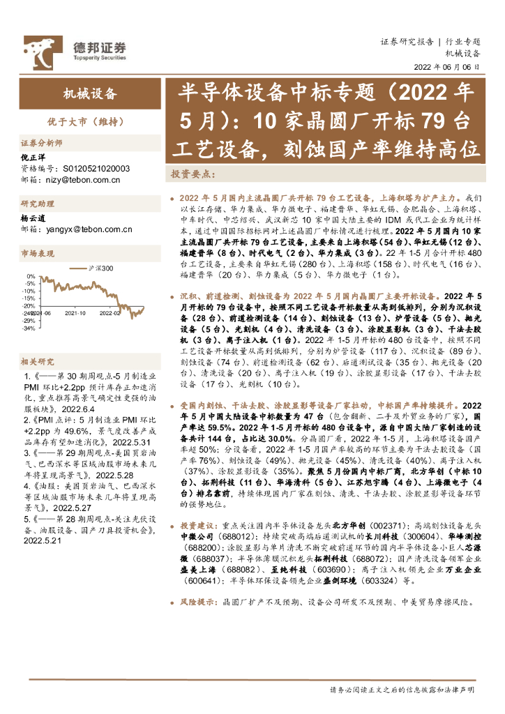 德邦证券:机械设备半导体设备中标专题(2022年5月):10家晶圆厂开标79台工艺设备,刻蚀国产率维持高位.pdf
