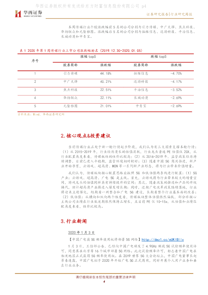 华西证券:传媒行业周报系列2020年第1周:行业配置性价比高,围绕5G与低估值两主线.pdf