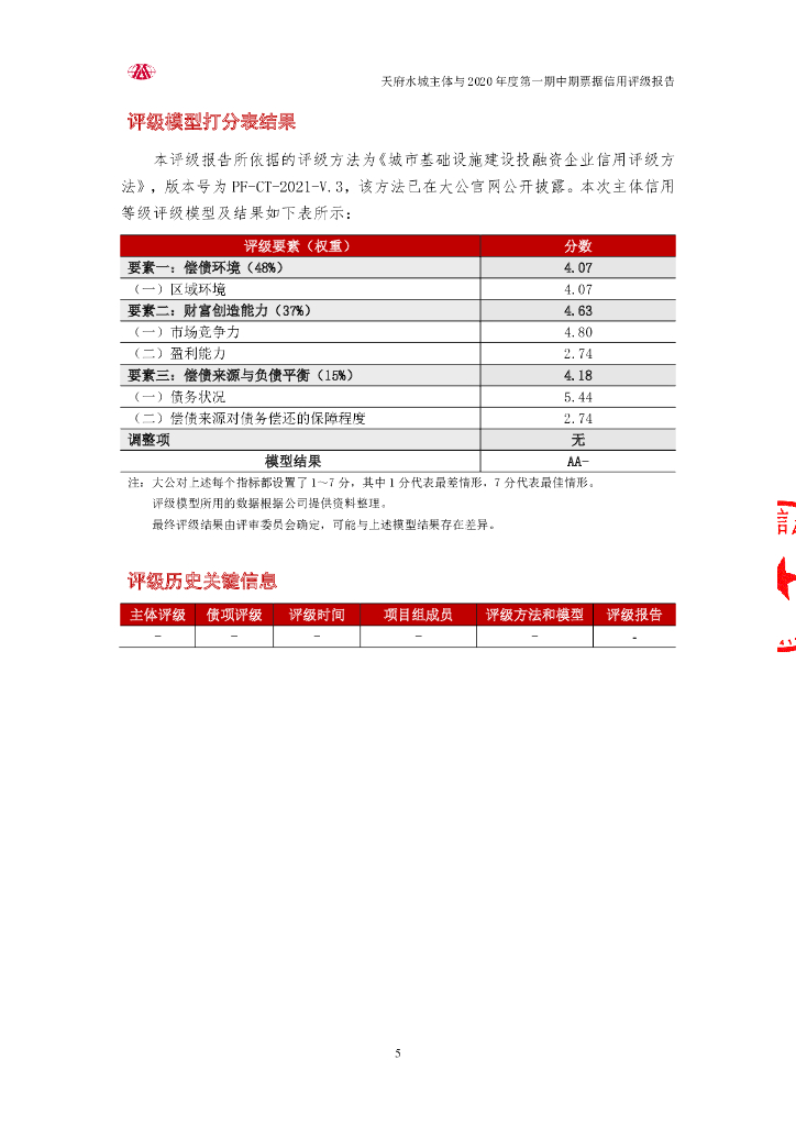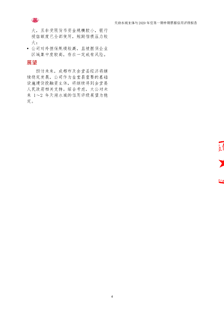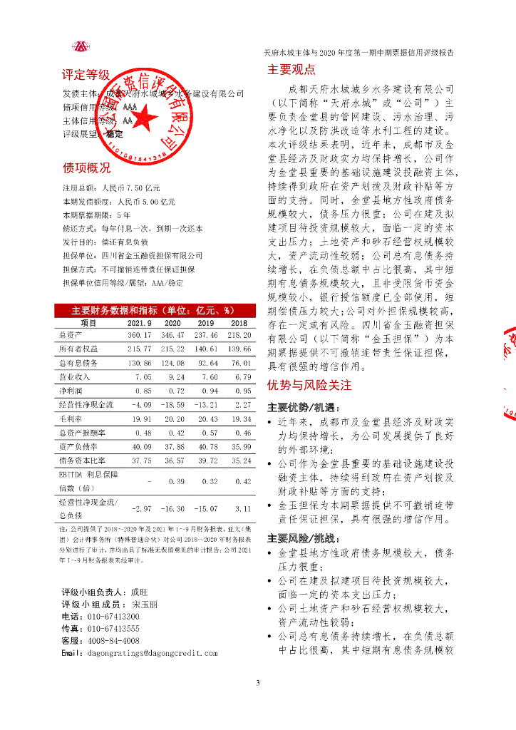 大公:成都天府水城城乡水务建设有限公司主体与2020年度第一期中期票据信用评级报告.pdf