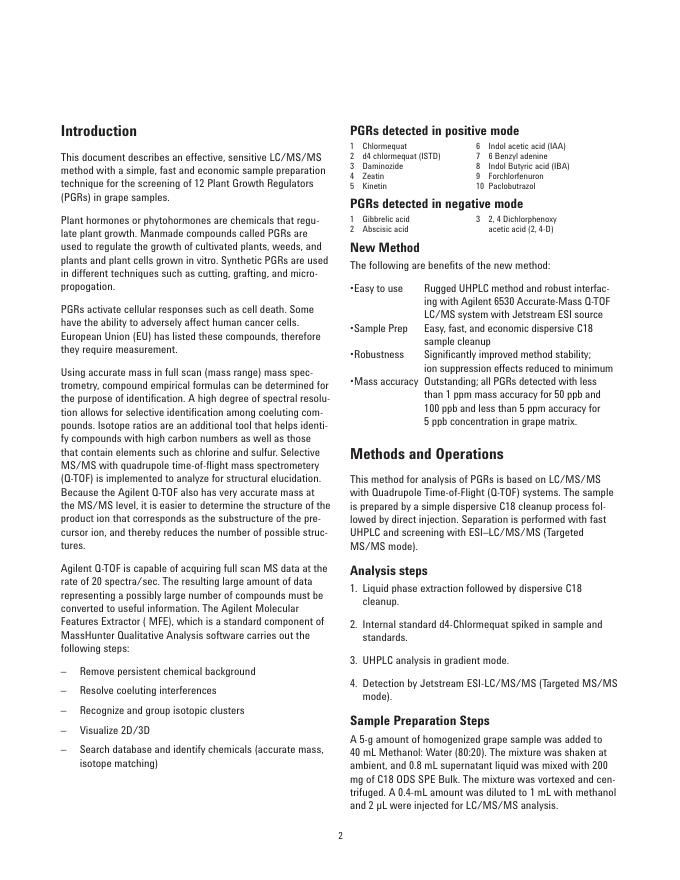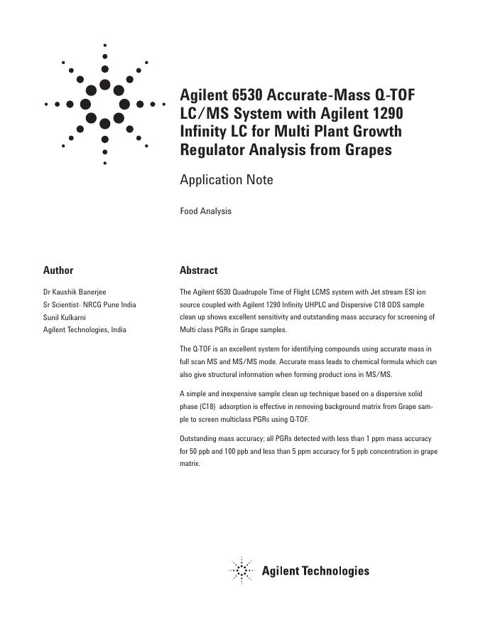 Agilent 6530 Accurate-Mass Q-TOF LC/MS System with Agilent 1290 Infinity LC for Multi Plant Growth Regulator Analysis from Grapes 数据手册.pdf