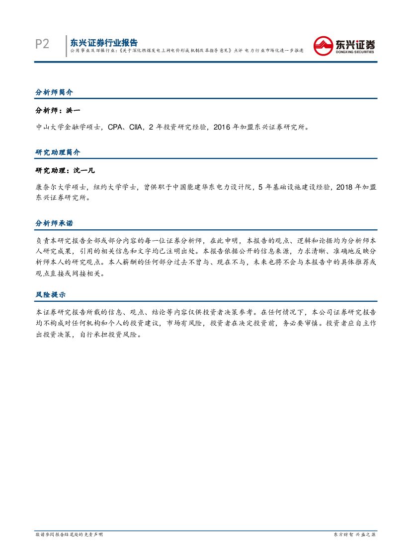 东兴证券:公用事业及环保行业:《关于深化燃煤发电上网电价形成机制改革指导意见》电力行业市场化进一步推进.pdf