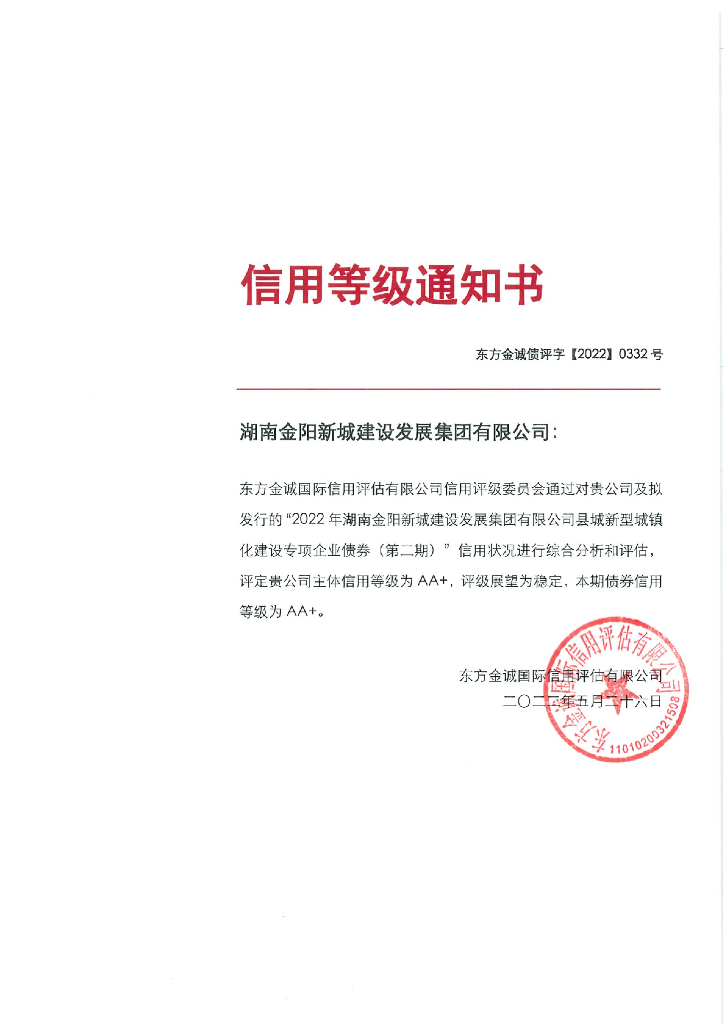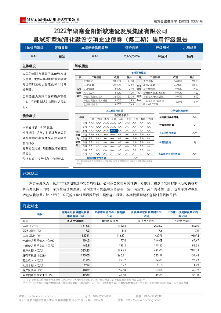 东方金诚:2022年湖南金阳新城建设发展集团有限公司县城新型城镇化建设专项企业债券(第二期)信用评级报告.pdf