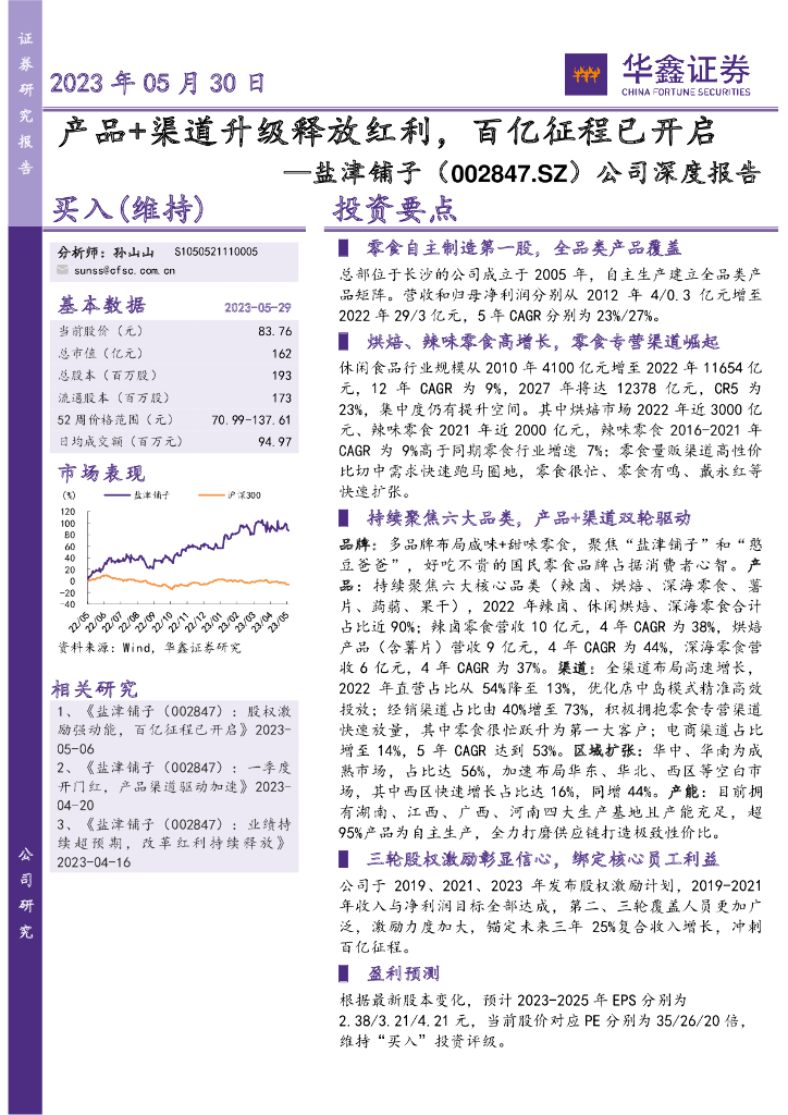 华鑫证券:盐津铺子(002847)-公司深度报告:产品+渠道升级释放红利,百亿征程已开启.pdf