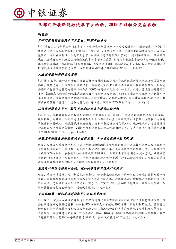 中银证券:汽车行业周报:新能源汽车下乡活动启动,2019年双积分交易开启.pdf