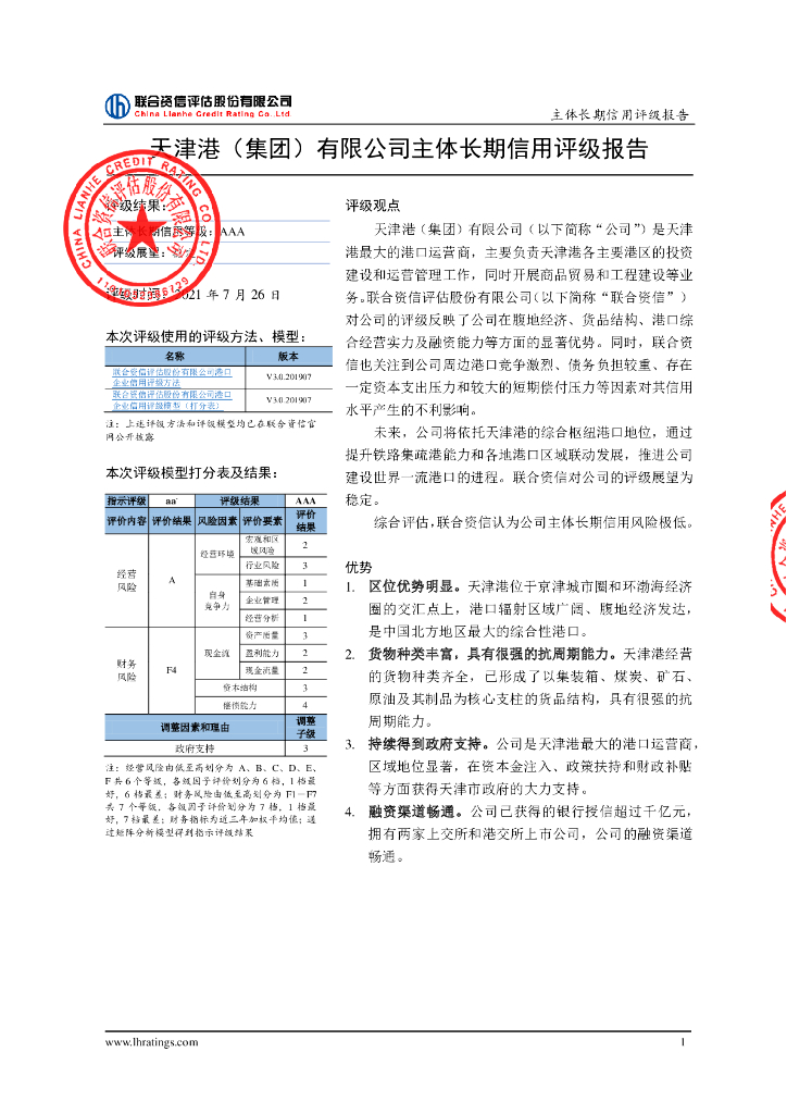 联合资信:天津港(集团)有限公司2021年度主体长期信用评级报告.pdf