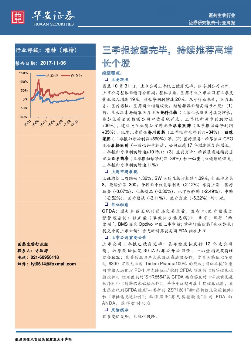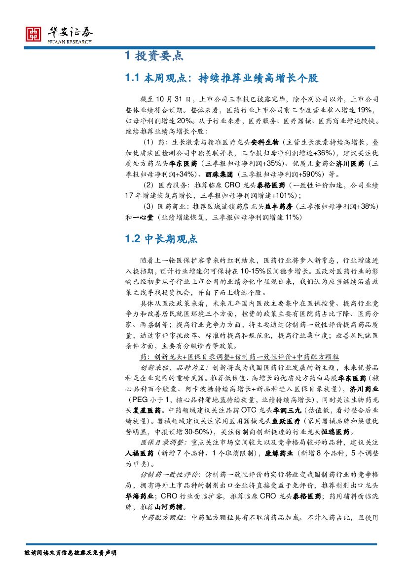 华安证券:医药生物行业周报:三季报披露完毕,持续推荐高增长个股.pdf