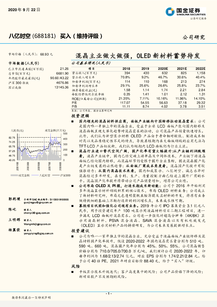 国金证券:八亿时空(688181)-混晶主业做大做强,OLED新材料蓄势待发.pdf