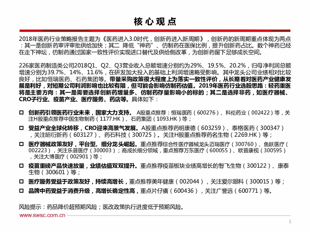 西南证券:医药行业2019年投资策略:仿制药格局变革、器械崛起,轻药重医.pdf