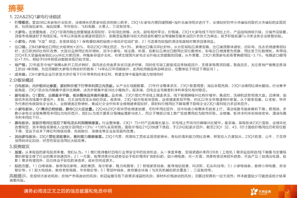 天风证券:家电行业2022年报&23一季报总结及二季度投资策略:瑕不掩瑜,继续前行.pdf