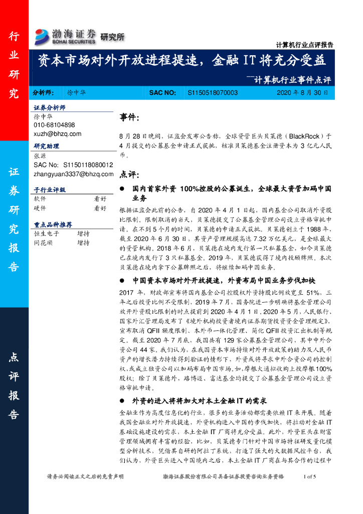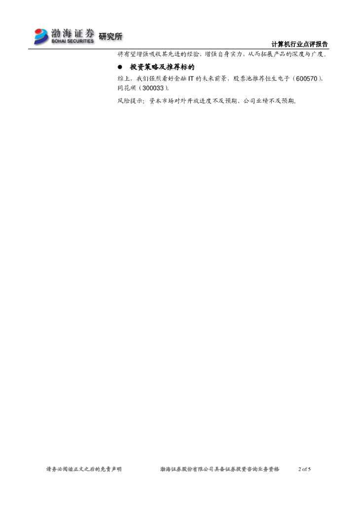 渤海证券:计算机行业事件点评:资本市场对外开放进程提速,金融IT将充分受益.pdf