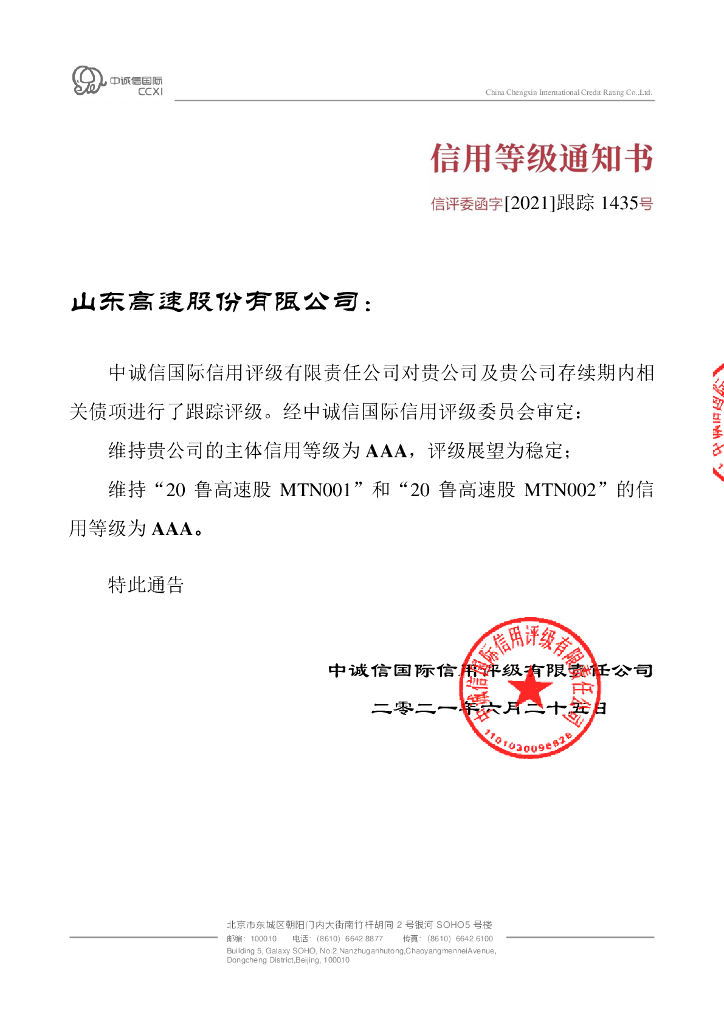 中诚信:山东高速股份有限公司主体信用评级报告.pdf
