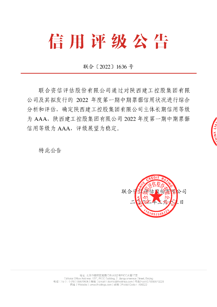 联合资信:陕西建工控股集团有限公司2022年度第一期中期票据信用评级报告.pdf
