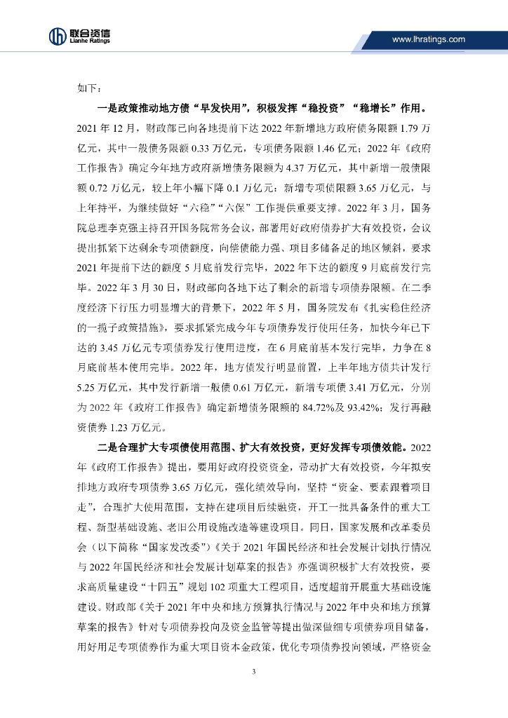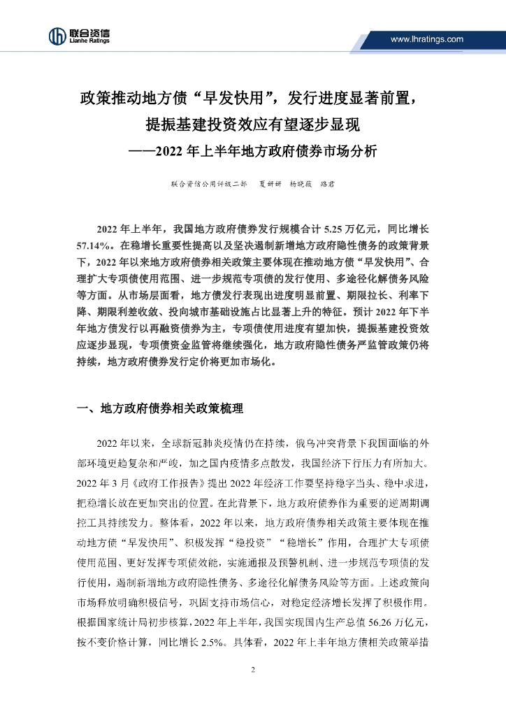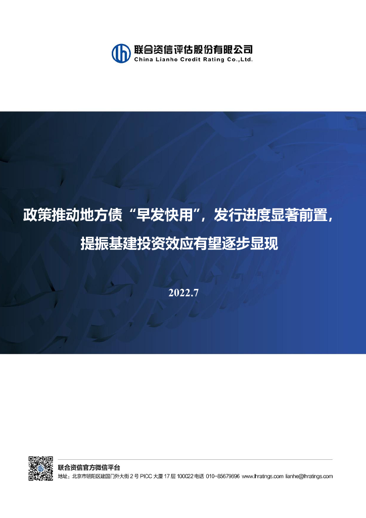 联合资信:政策推动地方债“早发快用”,发行进度显著前置,提振基建投资效应有望逐步显现——2022年上半年地方政府债券市场分析.pdf