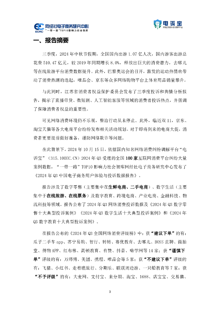 网经社:2024年Q3中国电子商务用户体验与投诉数据报告.pdf