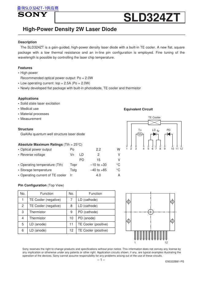SONY SLD324ZT High-Power Density 2W Laser Diode 数据手册(1)(1).pdf