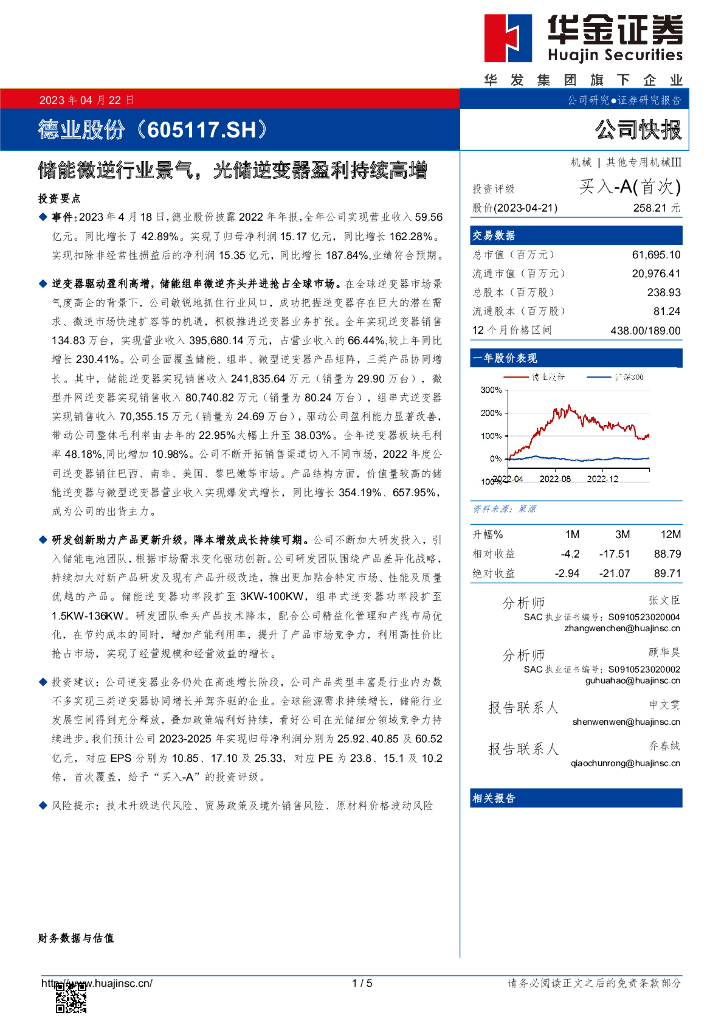 华金证券:德业股份(605117)-储能微逆行业景气,光储逆变器盈利持续高增.pdf