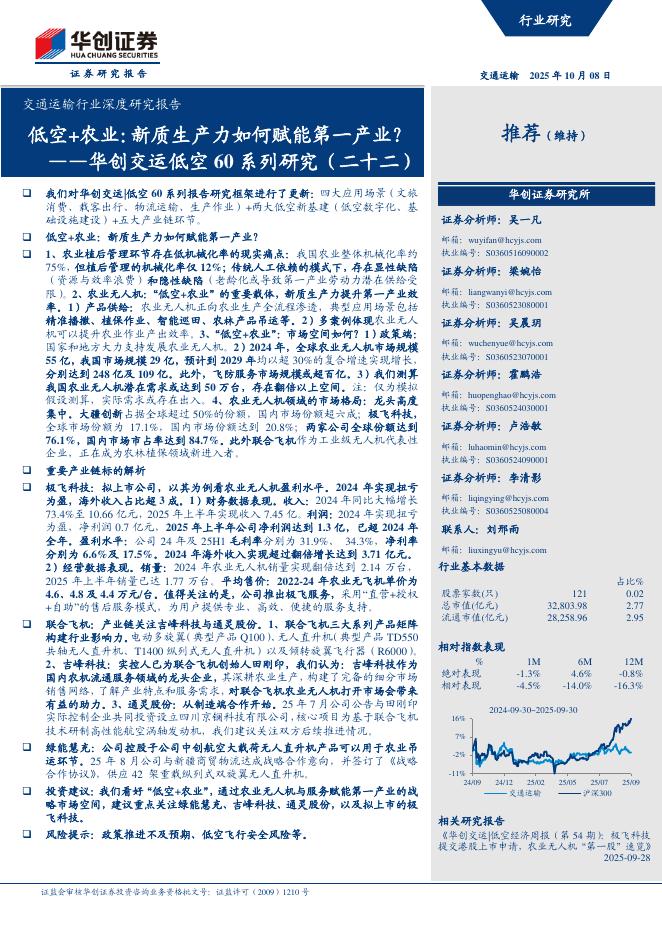 华创证券:华创交运低空60系列研究(二十二):低空+农业:新质生产力如何赋能第一产业?.pdf