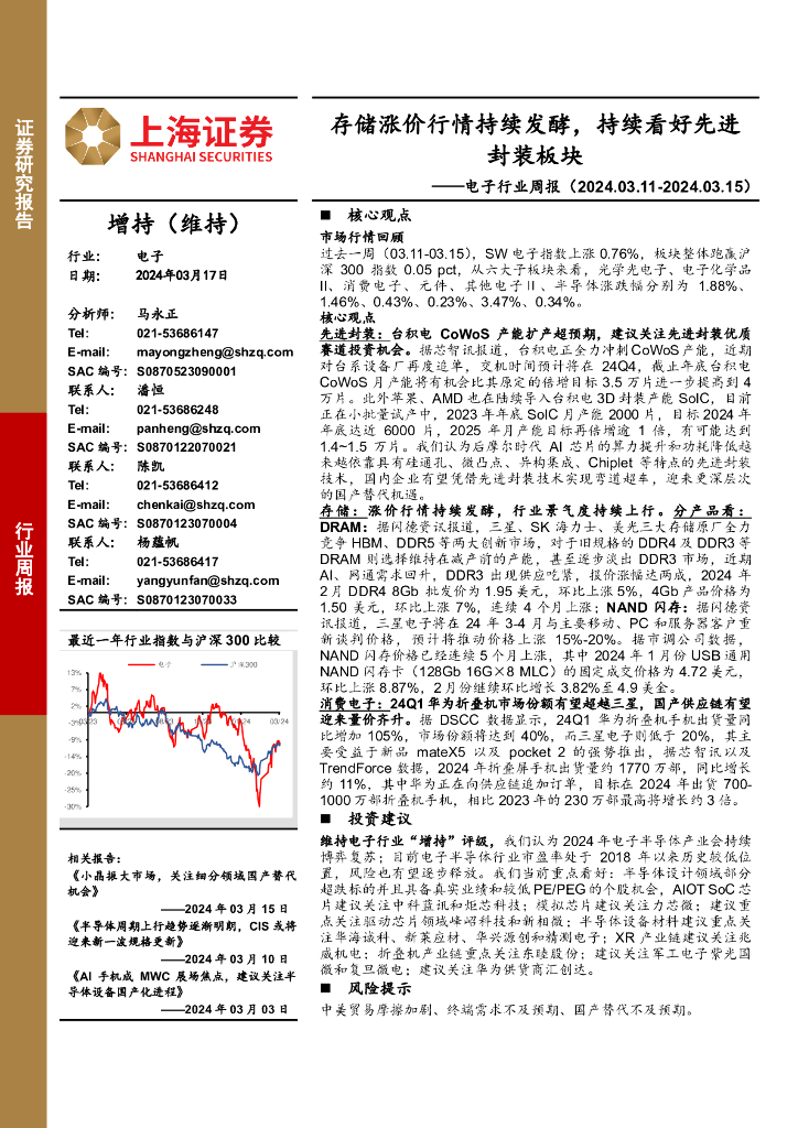 上海证券:电子行业周报:存储涨价行情持续发酵,持续看好先进封装板块.pdf
