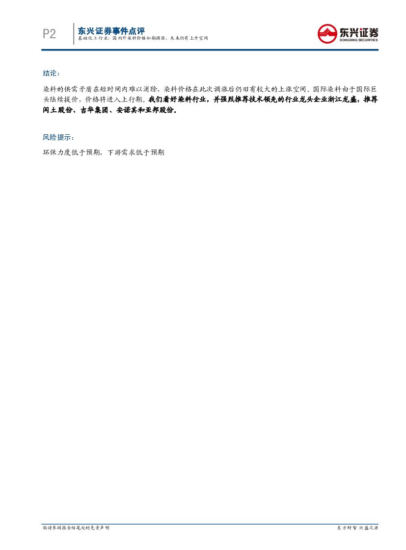 东兴证券:基础化工行业事件点评:国内外染料价格如期调涨,未来仍有上升空间.pdf