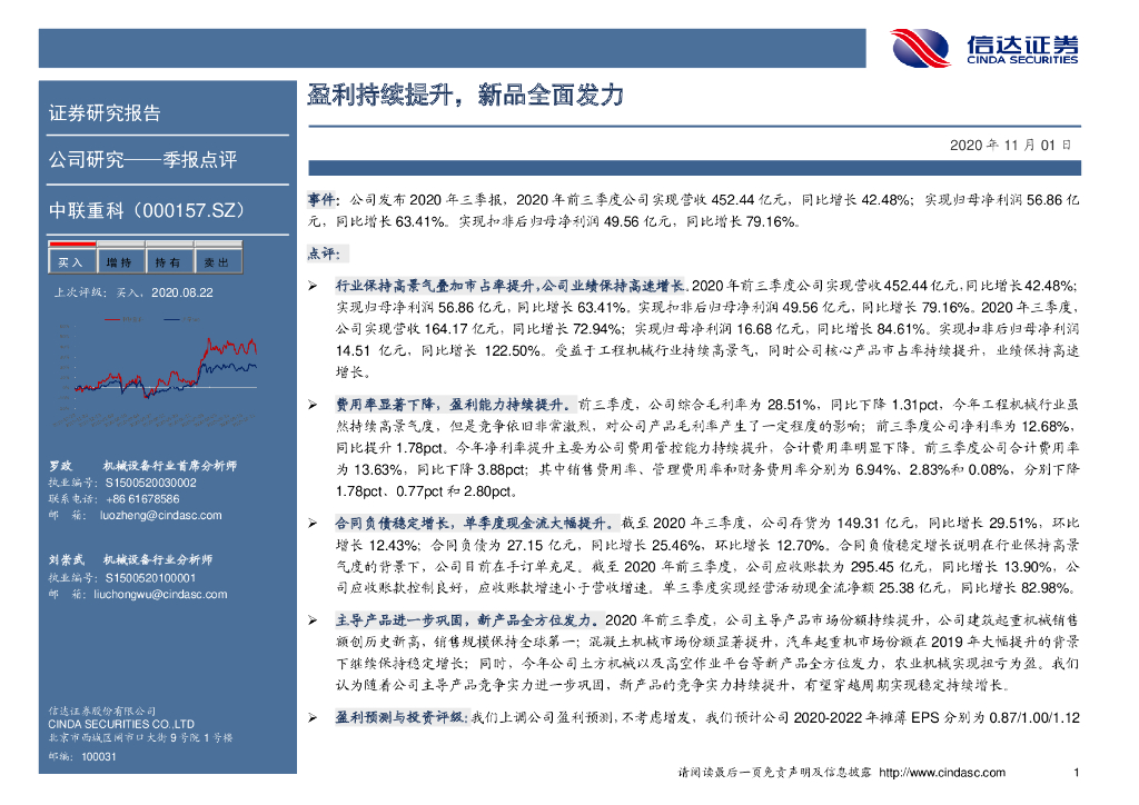 信达证券:中联重科(000157)-盈利持续提升,新品全面发力.pdf