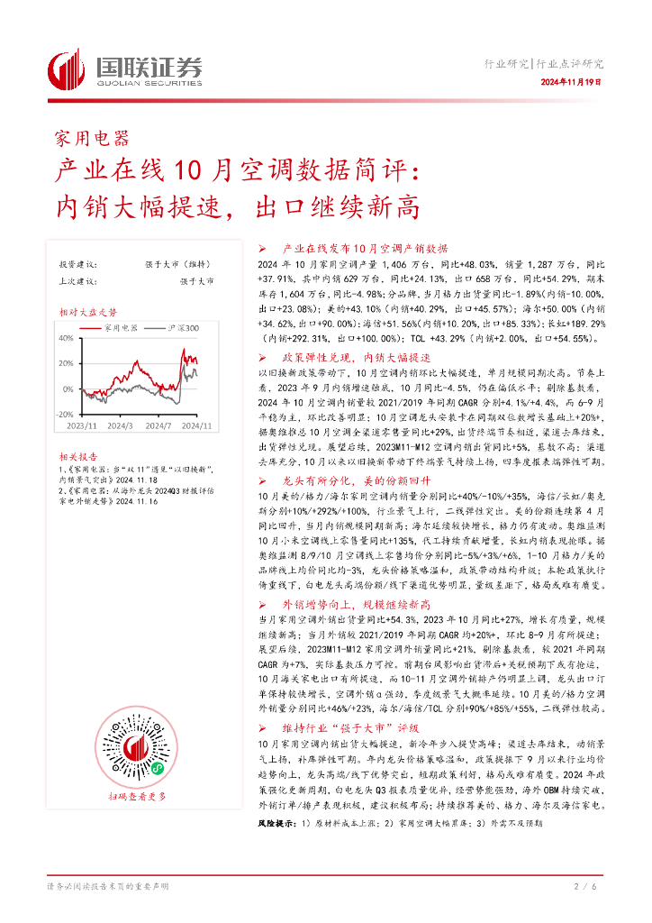 国联证券:产业在线10月空调数据简评:内销大幅提速,出口继续新高.pdf