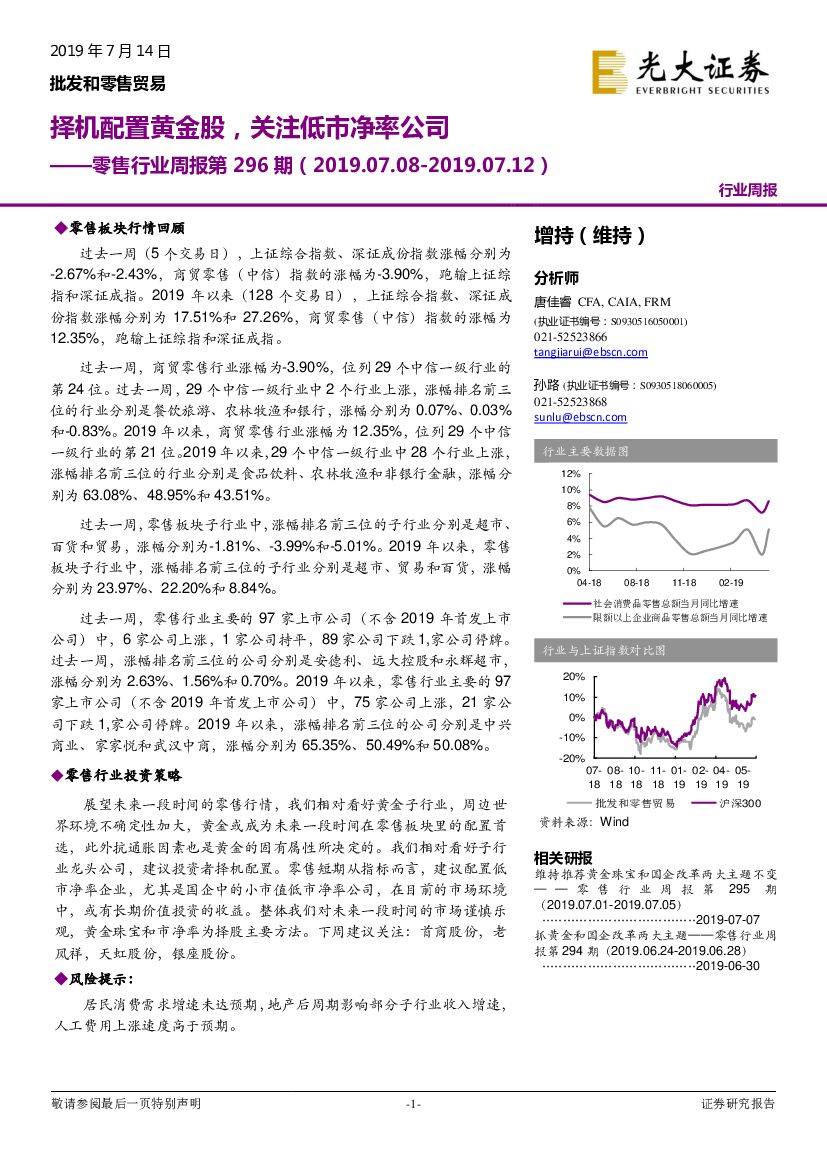 光大证券:零售行业周报第296期:择机配置黄金股,关注低市净率公司.pdf