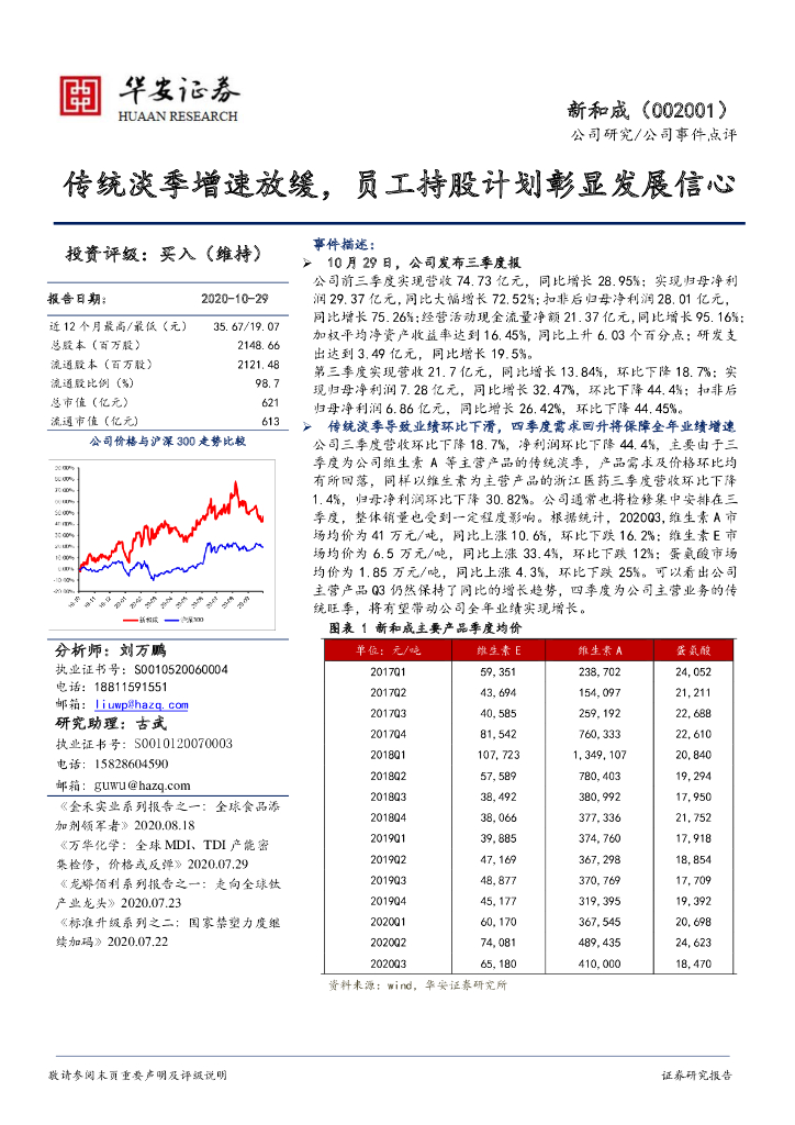 华安证券:新和成(002001)-传统淡季增速放缓,员工持股计划彰显发展信心.pdf