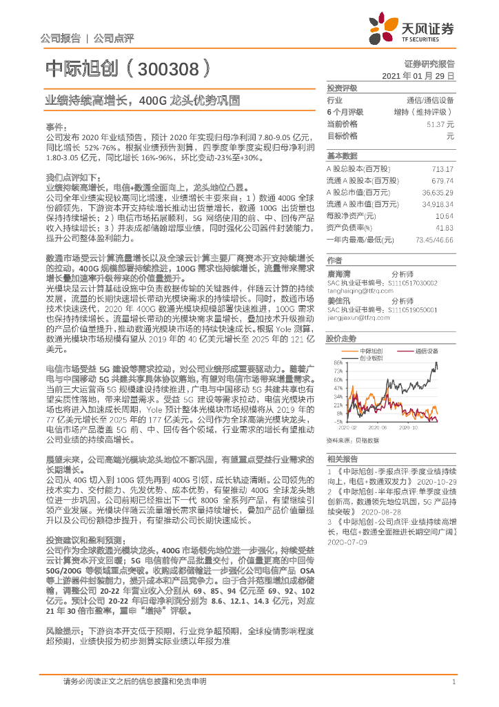 天风证券:中际旭创(300308)-业绩持续高增长,400G龙头优势巩固.pdf