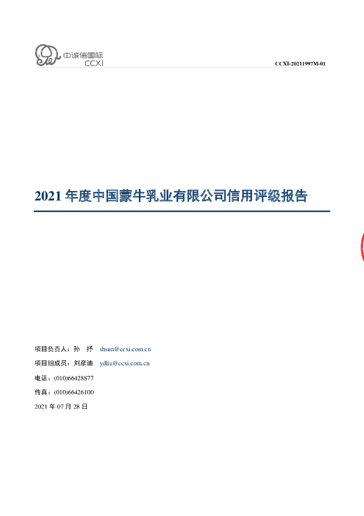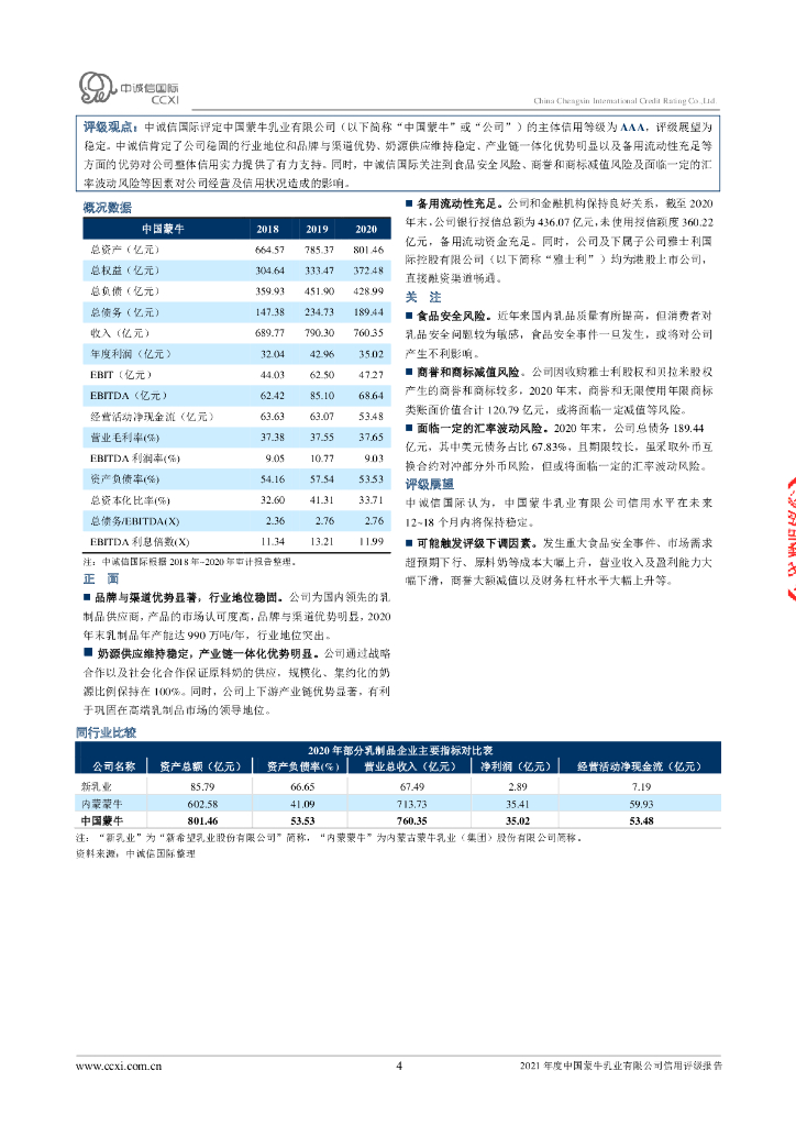 中诚信:中国蒙牛乳业有限公司主体信用评级报告及跟踪评级安排.pdf