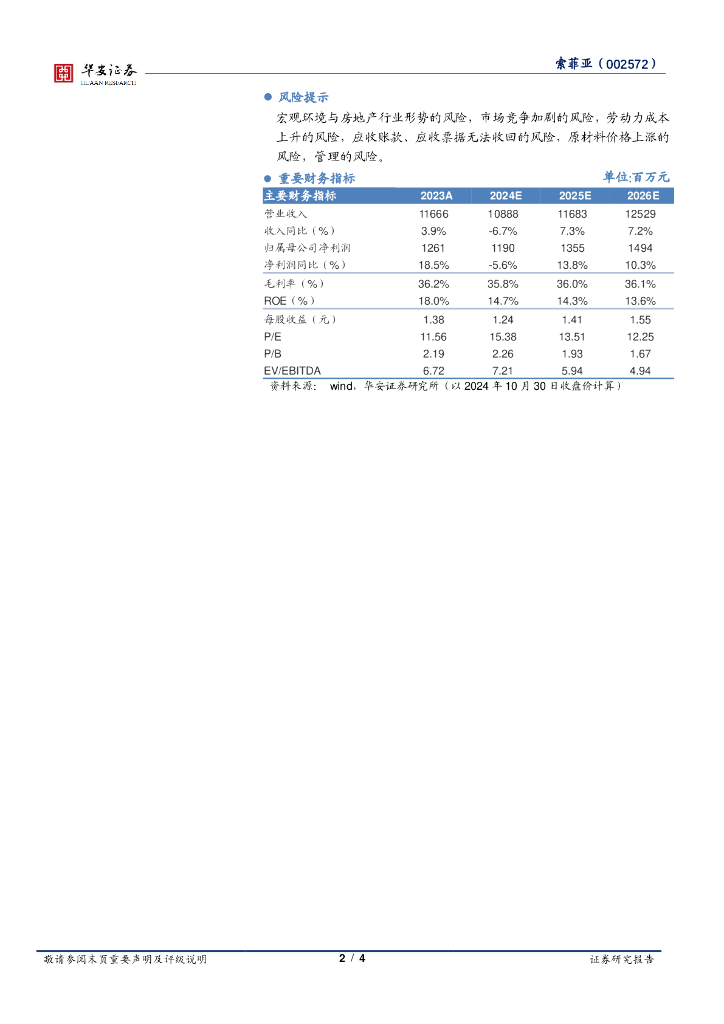 华安证券:索菲亚(002572)-2024Q3业绩承压,期待刺激政策成效.pdf