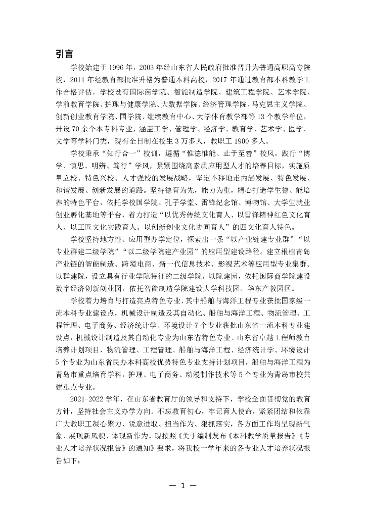 青岛黄海学院:2021-2022学年专业人才培养状况报告(本科).pdf