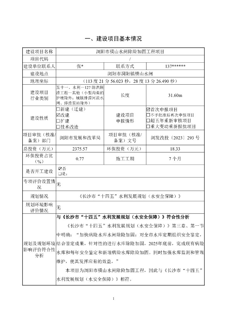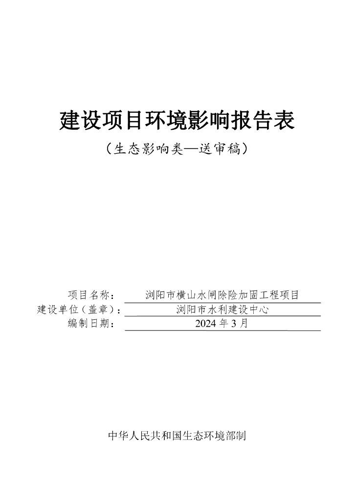 浏阳市横山水闸除险加固工程项目建设项目环境影响报告表(生态影响类)(送审稿).pdf