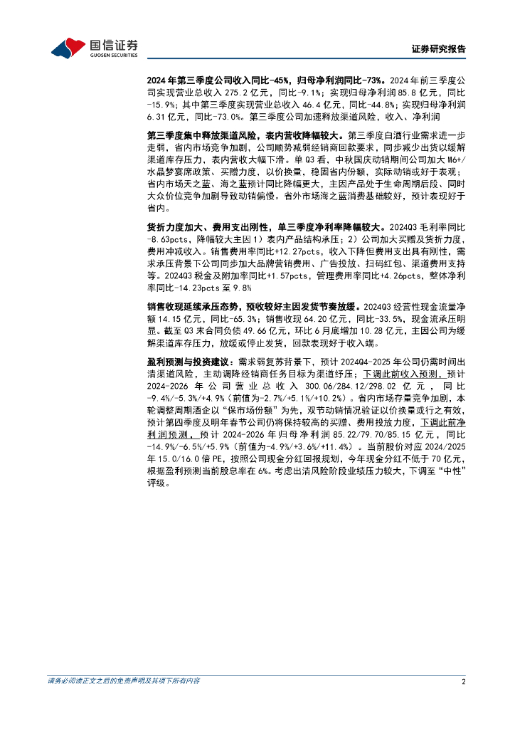 国信证券:洋河股份(002304)-第三季度加速调整,收入及净利润降幅环比扩大.pdf