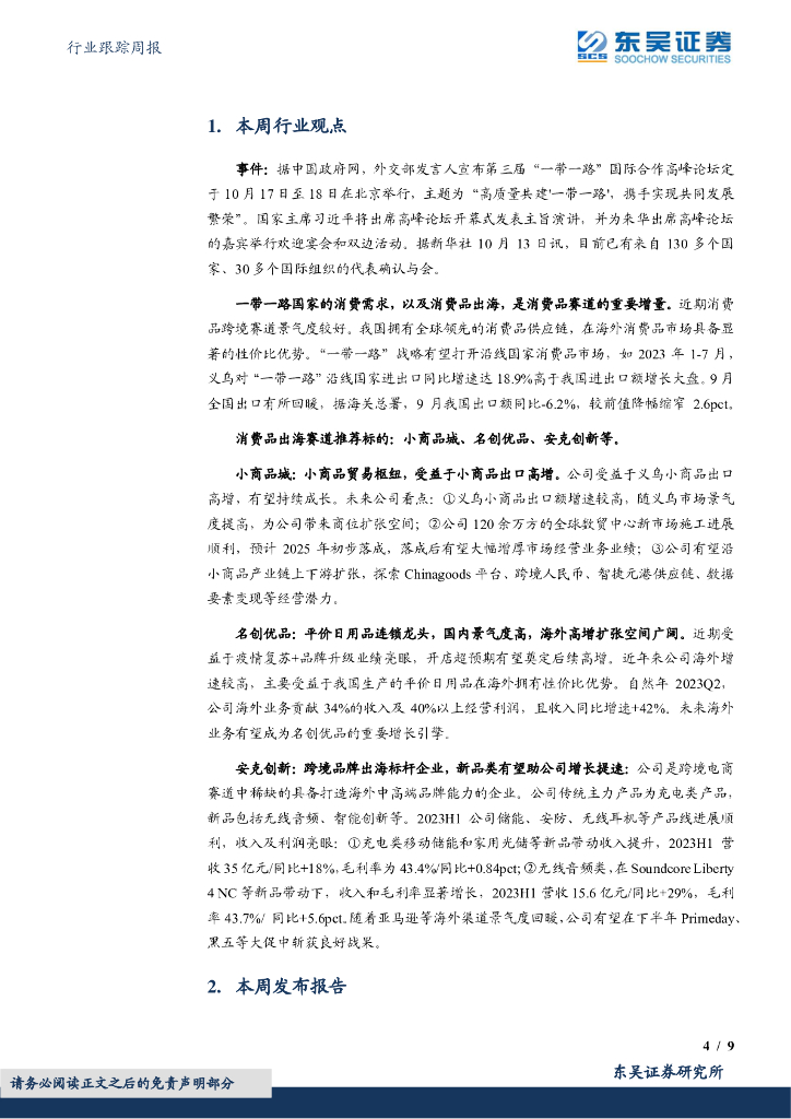 东吴证券:商贸零售行业跟踪周报:第三届“一带一路”高峰论坛将于10月17~18日举行,建议关注高景气+空间大的出海赛道.pdf