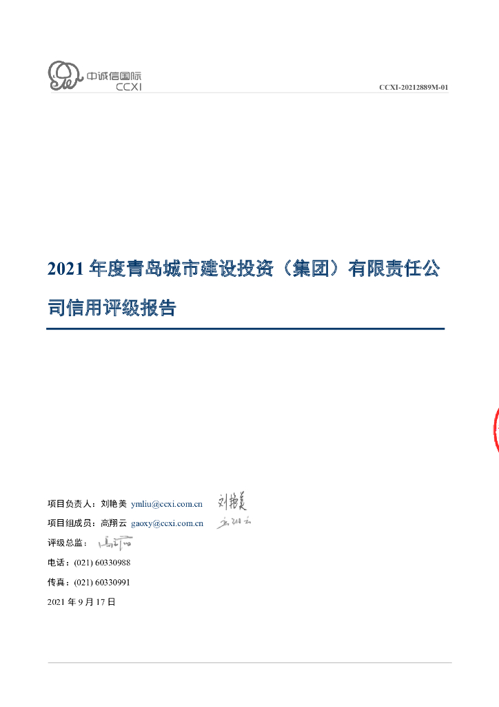 中诚信:青岛城市建设投资(集团)有限责任公司主体信用评级报告及跟踪评级安排.pdf