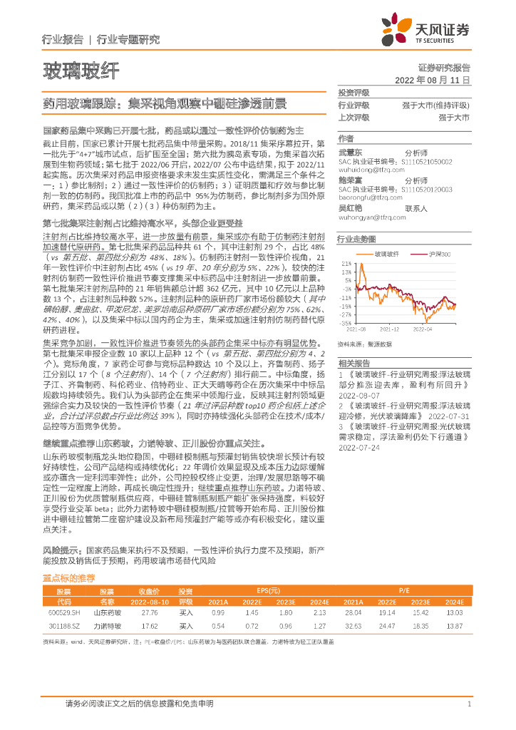 天风证券:玻璃玻纤:药用玻璃跟踪:集采视角观察中硼硅渗透前景.pdf