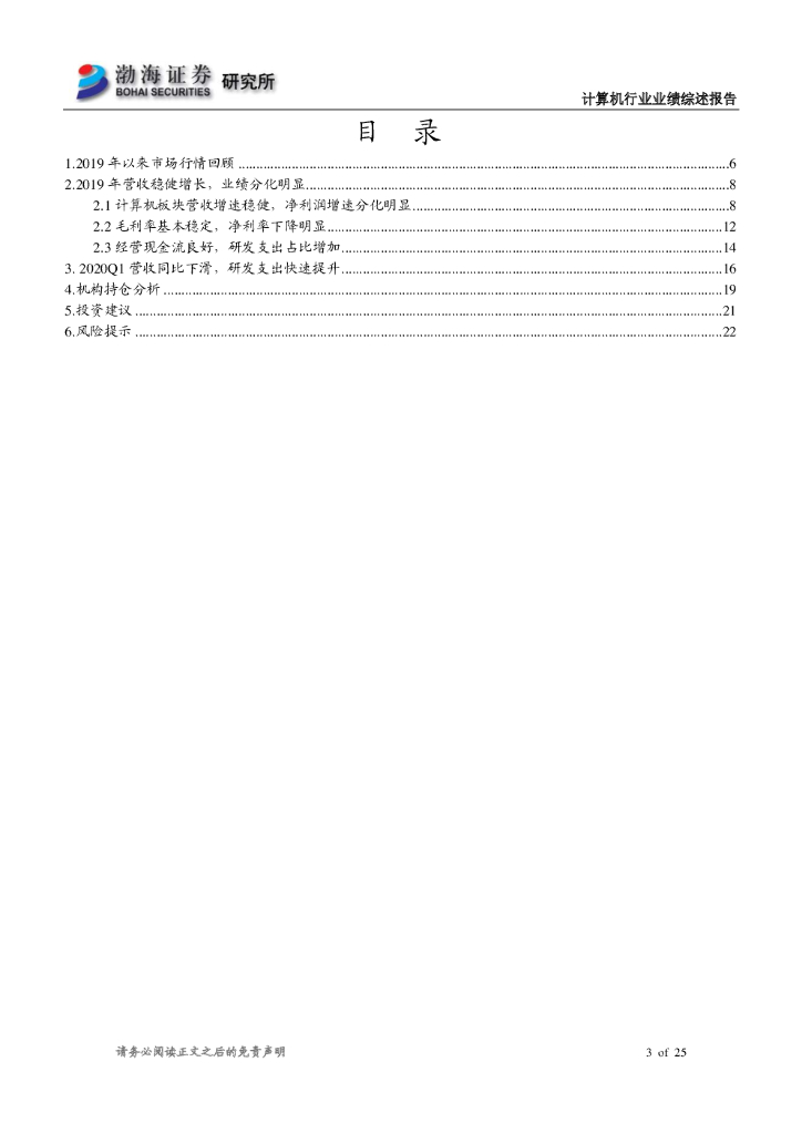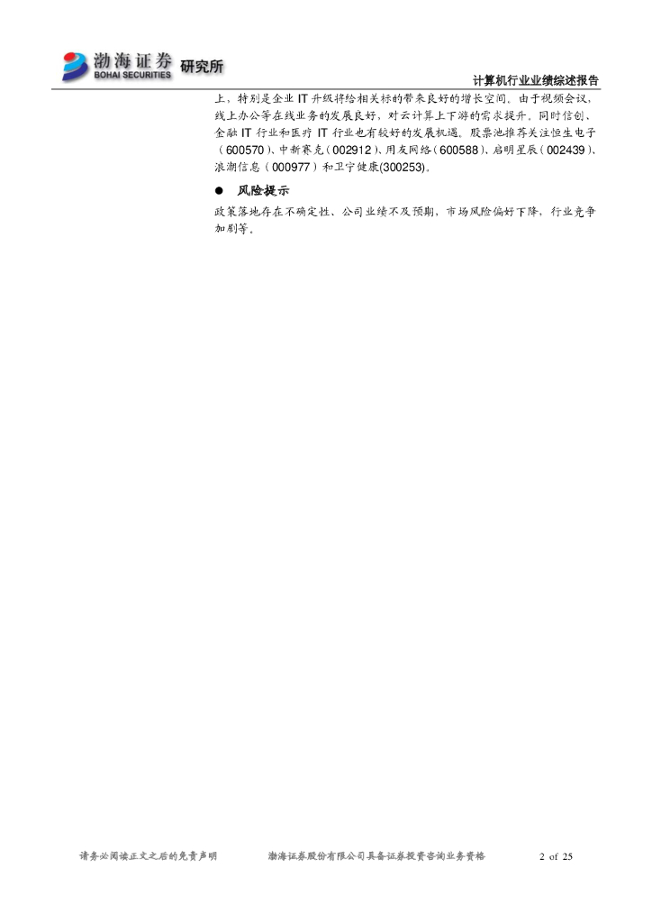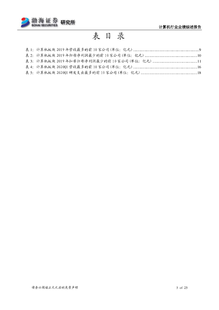 渤海证券:计算机行业2019年报及2020一季报综述:一季度业绩承压,关注细分成长领域.pdf