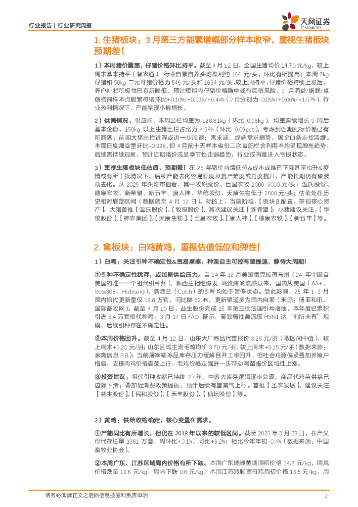 天风证券:农林牧渔2025年第15周周报:3月第三方能繁增幅部分样本收窄,重视生猪板块预期差!.pdf