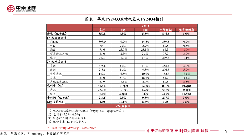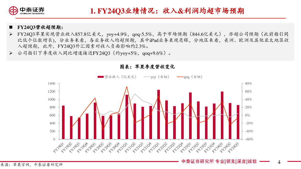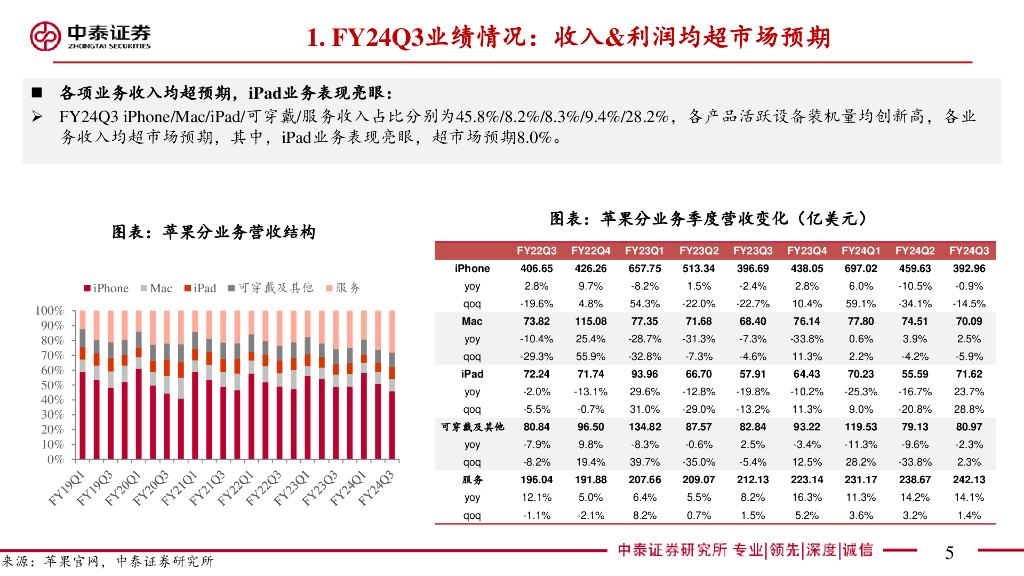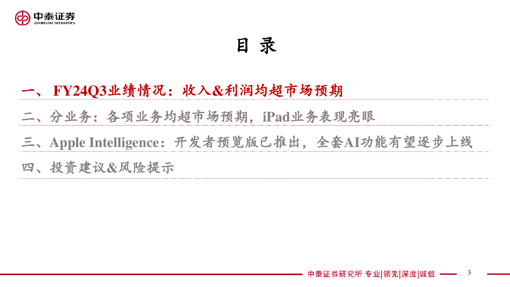 中泰证券:【中泰电子】AI全视角—科技大厂财报专题:苹果FY24Q3季报点评:业绩超预期,全套AI功能有望逐步上线.pdf