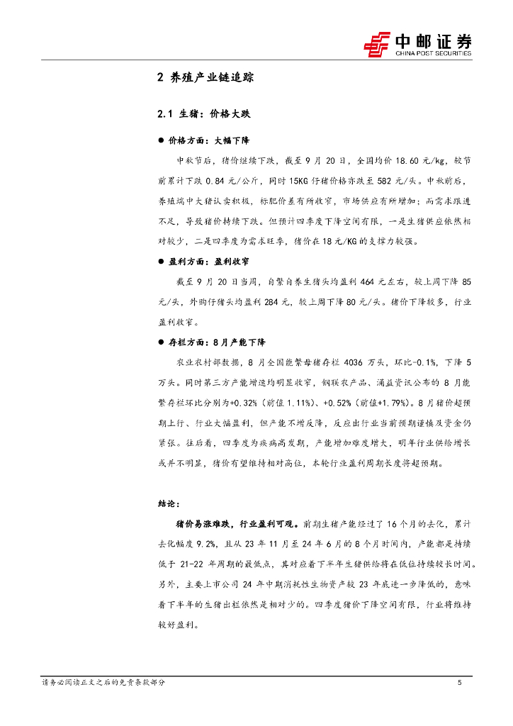 中邮证券:农林牧渔行业报告:生猪、仔猪价格均明显下跌,产能增长缓慢.pdf