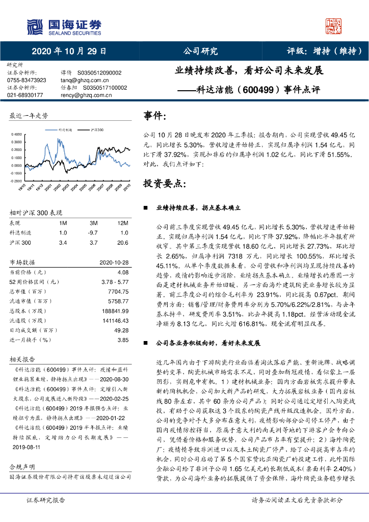 国海证券:科达制造(600499)-事件点评:业绩持续改善,看好公司未来发展.pdf
