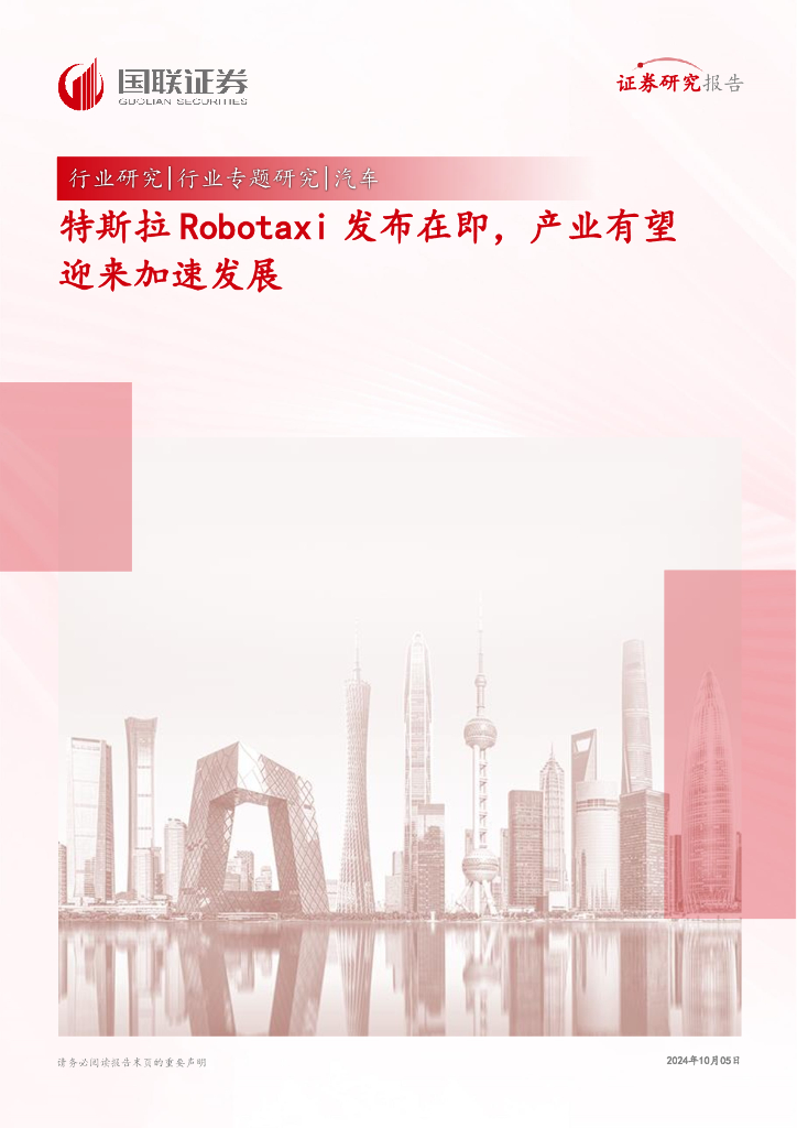 国联证券:汽车行业专题研究:特斯拉Robotaxi发布在即,产业有望迎来加速发展.pdf