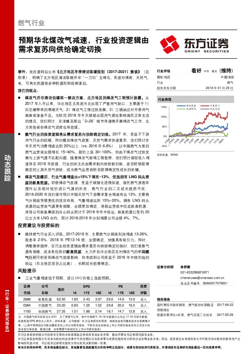 东方证券:燃气行业动态跟踪:预期华北煤改气减速,行业投资逻辑由需求复苏向供给确定切换.pdf