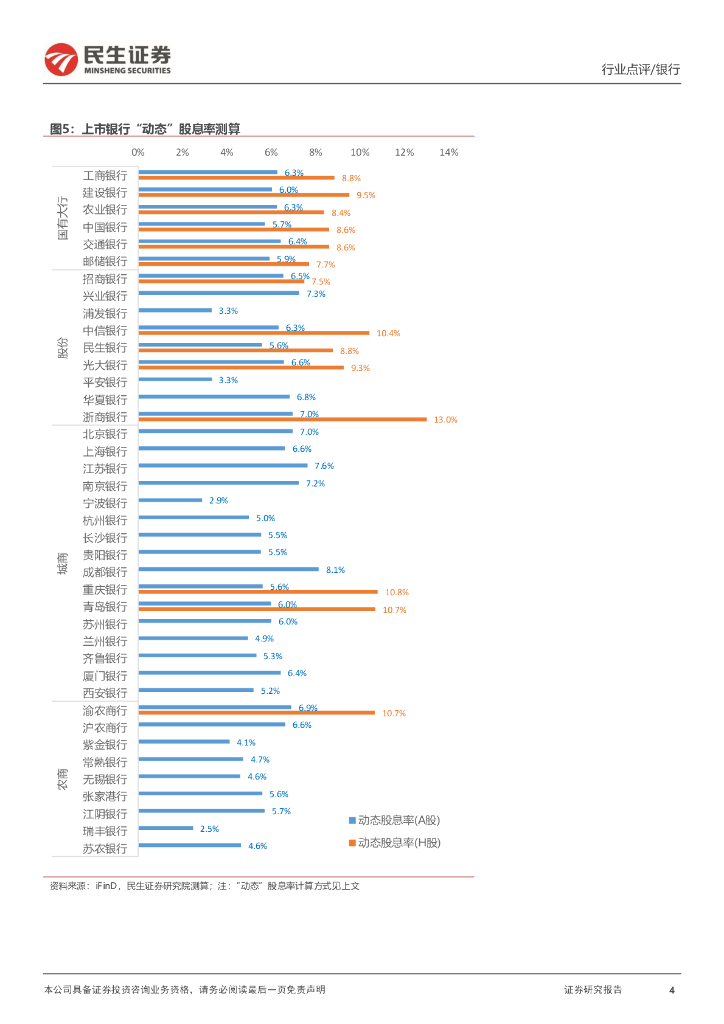 民生证券:银行业跟踪报告:关注银行高股息逻辑,红利策略范围或扩大.pdf