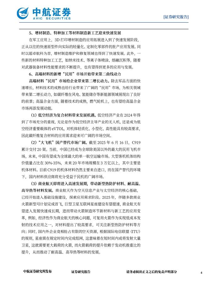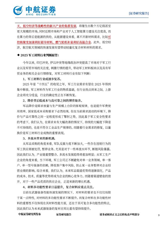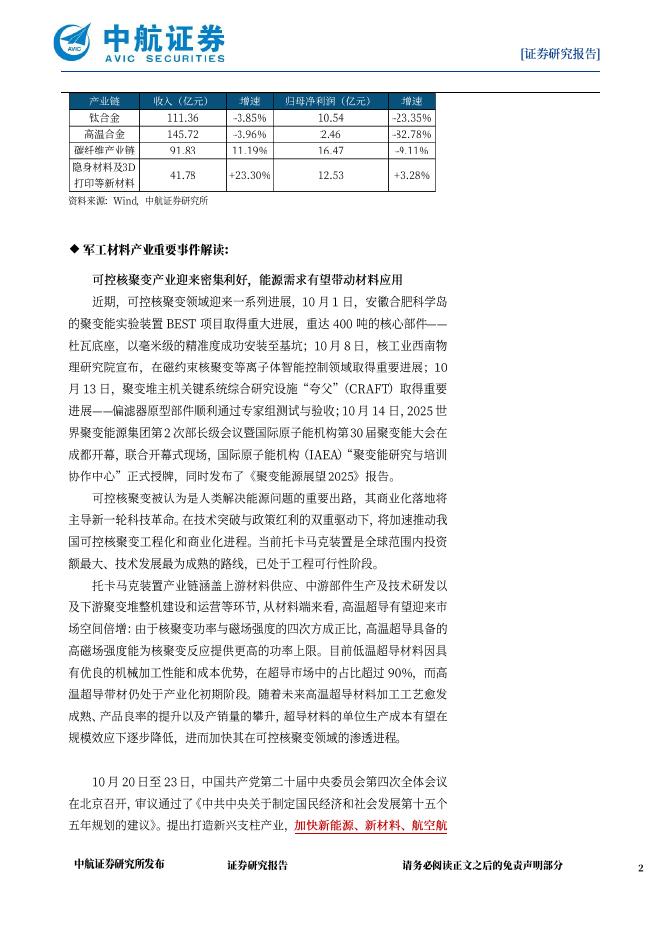 中航证券:军工材料月报:三季度归母净利润为负,能源需求有望带动材料应用.pdf