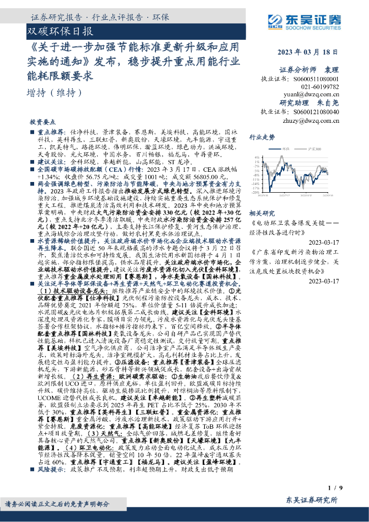 东吴证券:双碳环保日报:《关于进一步加强节能标准更新升级和应用实施的通知》发布,稳步提升重点用能行业能耗限额要求.pdf